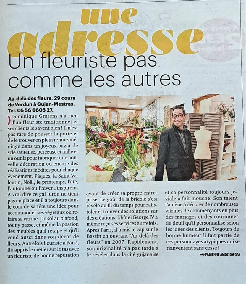 La boutique "Au-delà des Fleurs", située au 29 Cours de Verdun à Gujan-Mestras, est un espace en perpétuelle évolution où la décoration change régulièrement, reflétant notre passion et notre créativité dans l'art floral.